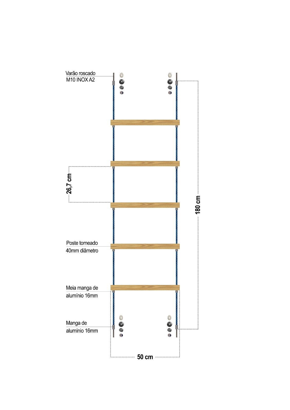MATERIALOs elementos em cabo misto de 16 mm que produzimos são desenvolvidos para responder às exigências dos ambientes mais desafiantes. Apresentam uma boa durabilidade, mesmo em contextos de uso intensivo, e resistem eficazmente à tração, deformação e desgaste ao longo do tempo. São imunes à ação de produtos químicos, à humidade e à corrosão, mantendo o seu desempenho tanto em temperaturas extremas como sob exposição prolongada aos raios UV.