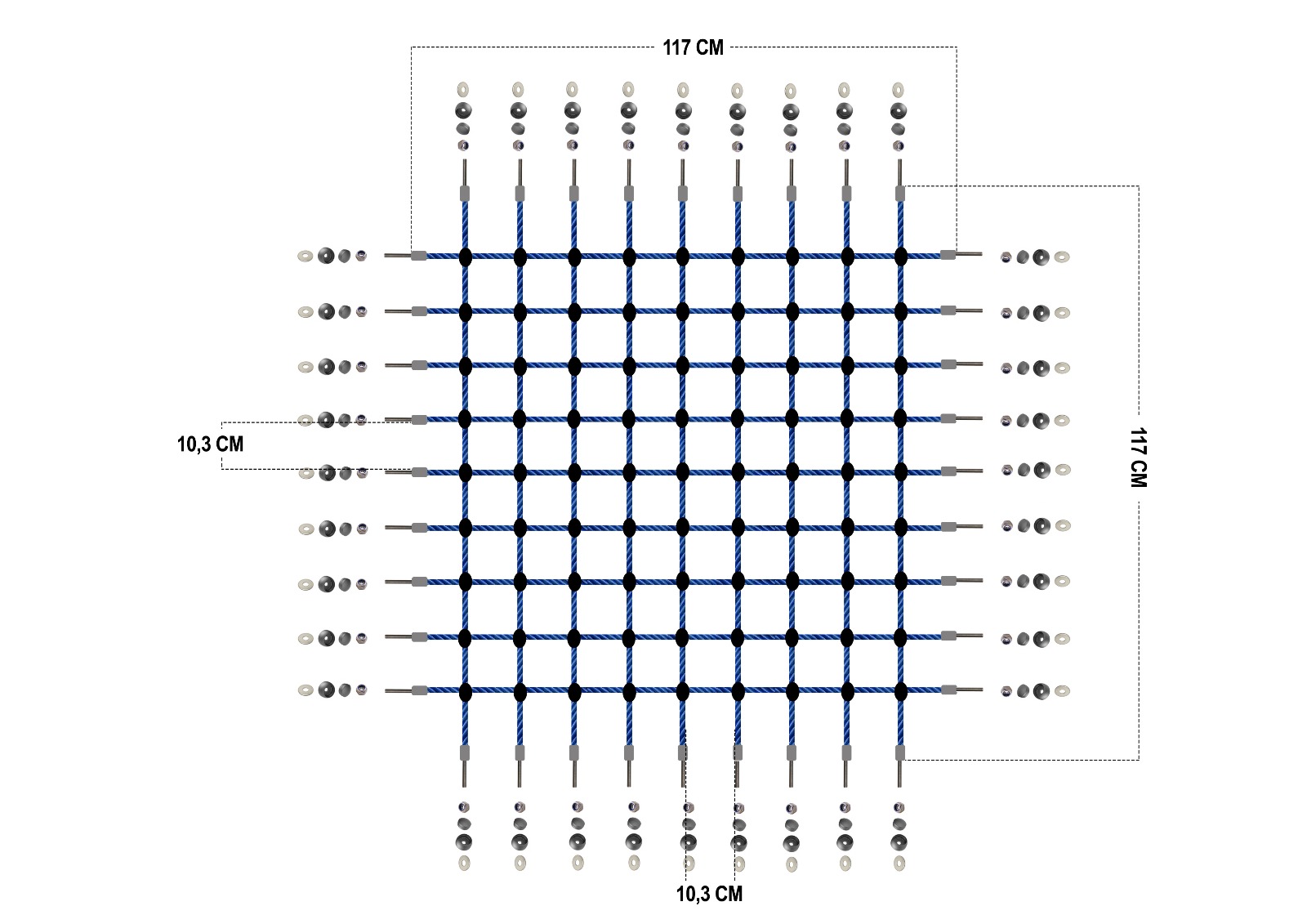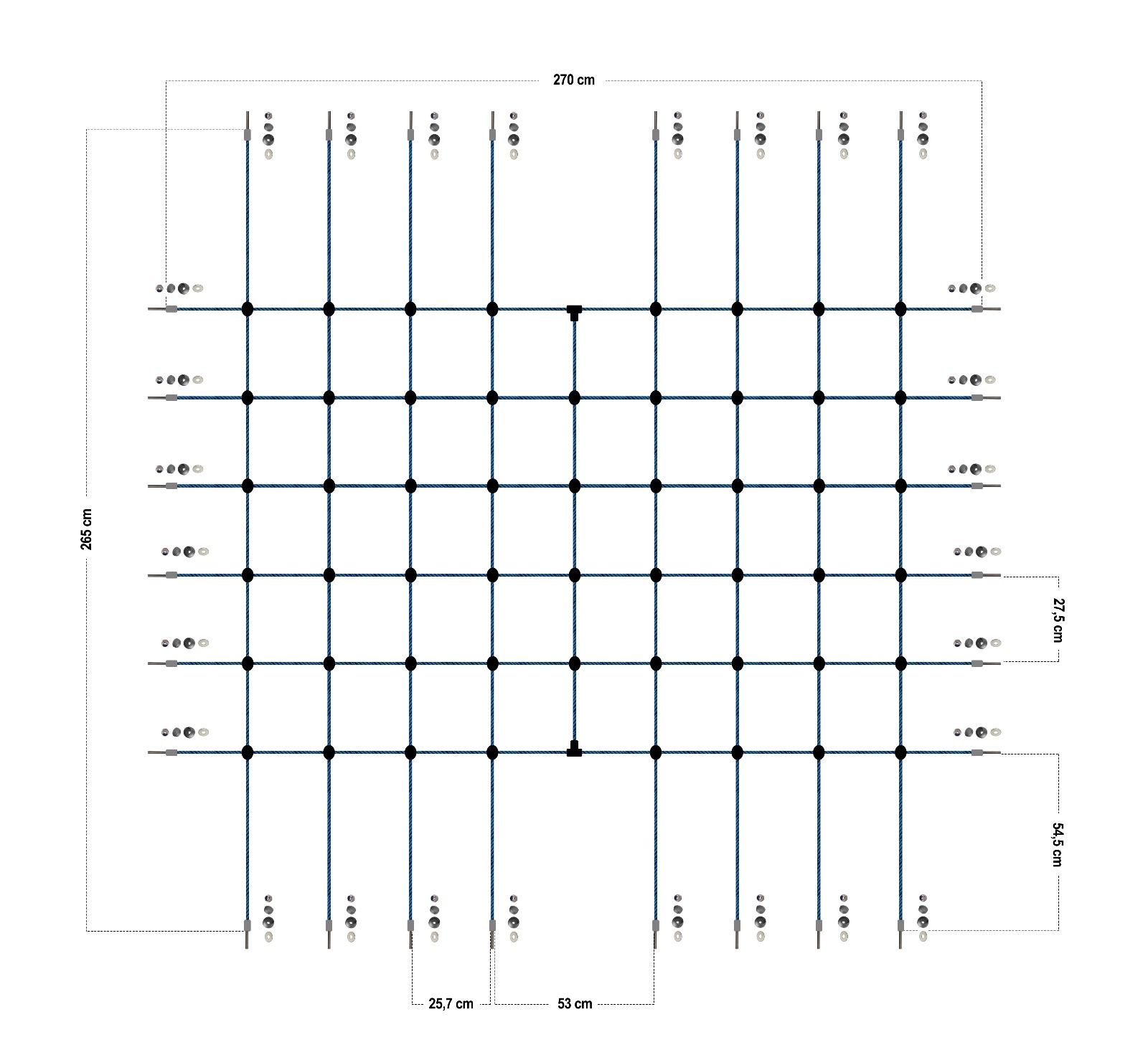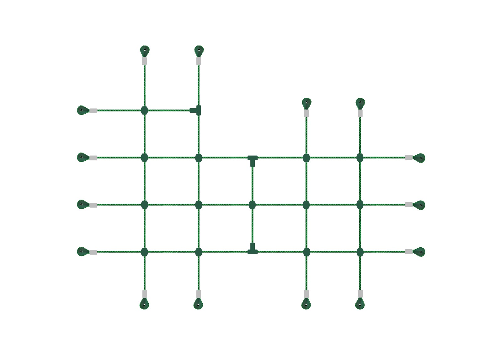 DESENVOLVIMENTOAntes de cada produção, há sempre um plano. Cada estrutura com cordas começa com um projeto técnico detalhado. Desenvolvemos esquemas que orientam a disposição das cordas, os pontos de fixação e os elementos de segurança. Este planeamento inicial permite não só visualizar o resultado final, como também garantir que todas as soluções cumprem os critérios definidos pela norma europeia EN1176. Só depois desta fase de análise e validação é que avançamos para a produção.